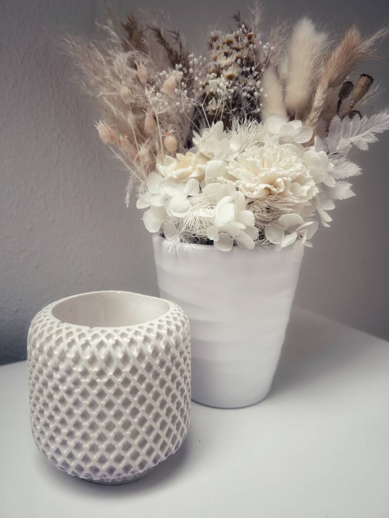 Ich fertige auf euren Wunsch gern Gips Figuren, Vasen oder auch Behälter für Kerzen an.